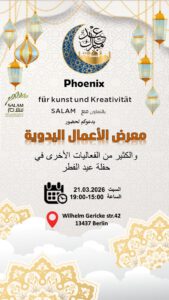 ZUCKERFESTSalamMärz 16, 2026Uncategorized Teile deine Liebe Salam Artikel: 98 Vorheriger Beitrag Einladung zum English Speaking Club Nächster Beitrag HANDWERKSKUNST